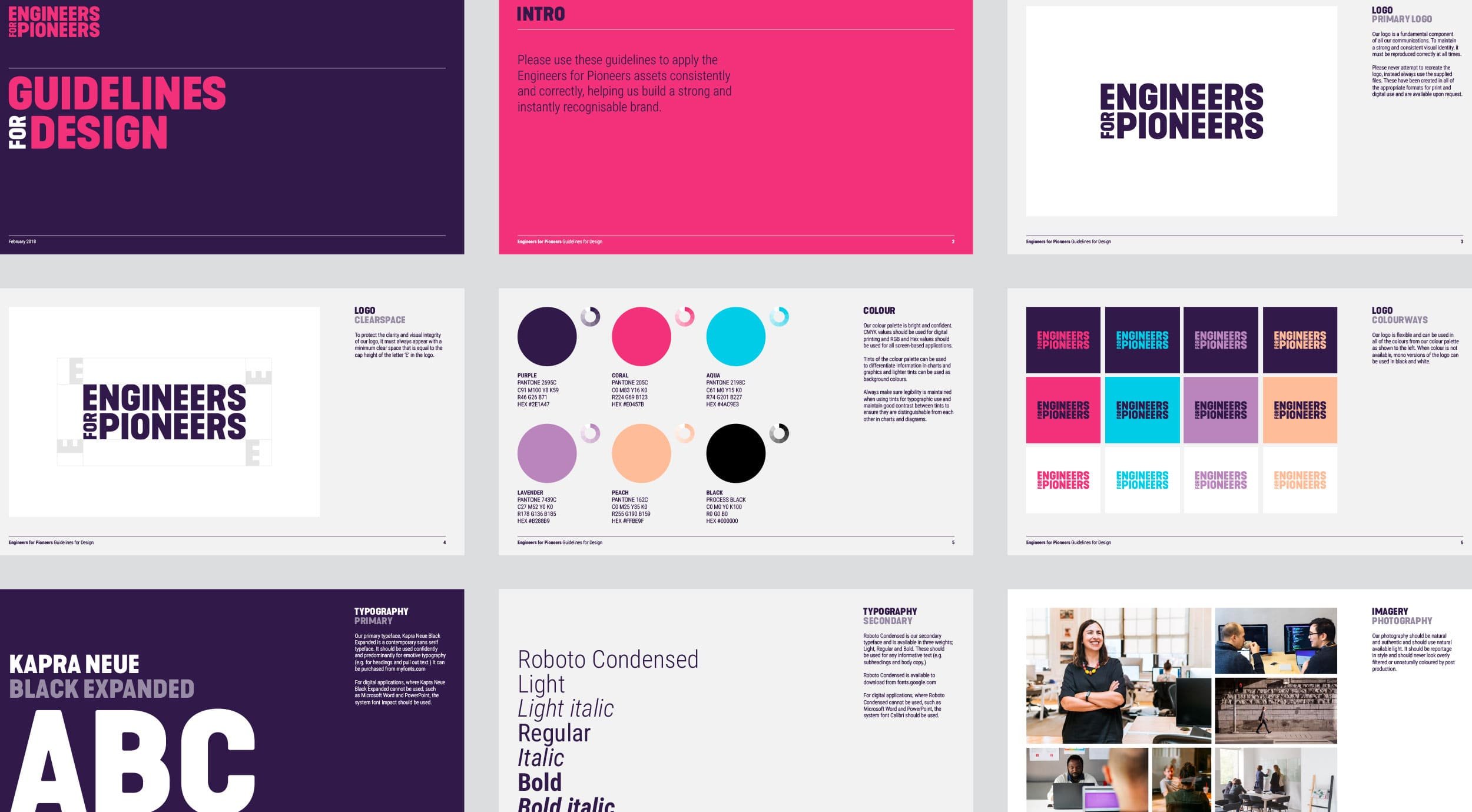 Our bright, punchy brand gives Engineers for Pioneers confidence and attitude. The ‘For’ device provides loads of opportunities to explore the connection between workers (engineers) and businesses (pioneers) and make the brand proposition crystal clear. It’s brilliant for advertising and social messages too, and it can be tailored to both audiences. From logos to type to illustration, we captured the whole lot in detailed brand guidelines that show the team how to get it right.